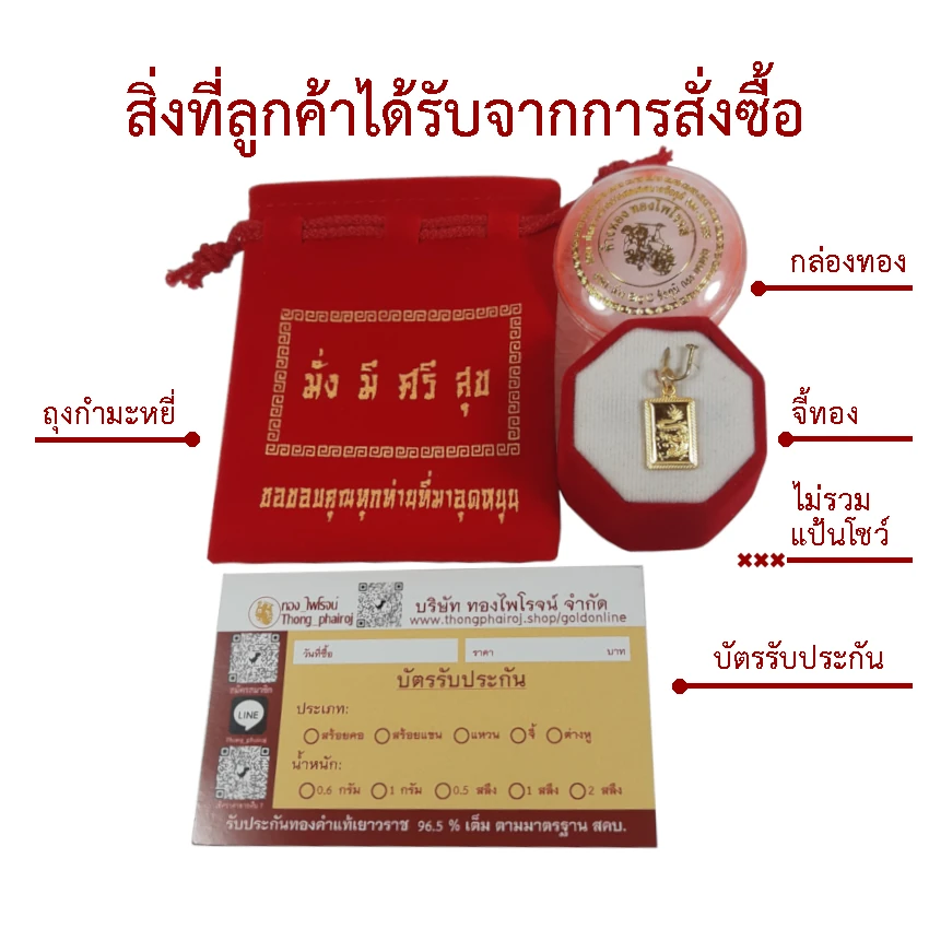 ตรวจสอบสินค้าทุกชิ้นว่ามีตราประทับจากผู้ผลิตทองคำ96.5%