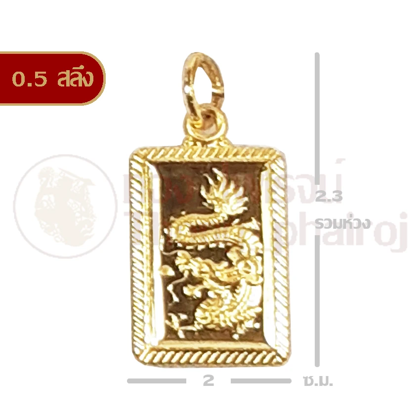 จี้12นักษัตรทองคำ96.5%ปีมังกรหนักครึ่งสลึง(1.89กรัม)(แบบเหรียญสี่เหลี่ยม)